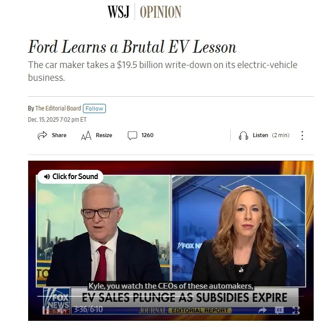 Uma baixa contábil de US$19,5 bilhões será dolorosa, mas é melhor do que gastar dezenas de bilhões de dólares a mais na fabricação de carros que não são desejados por um número suficiente de americanos. A Ford pode concentrar seus investimentos em caminhonetes e SUVs a gasolina, que são populares entre os clientes e geram — ousemos dizer a palavra proibida — lucro, alfinetou o WSJ.