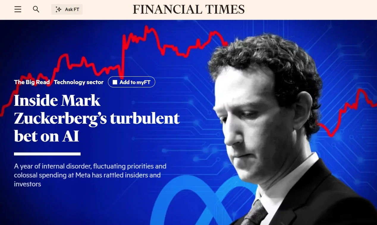 Financial Times mergulha em turbulenta aposta de Zuckerberg em IA