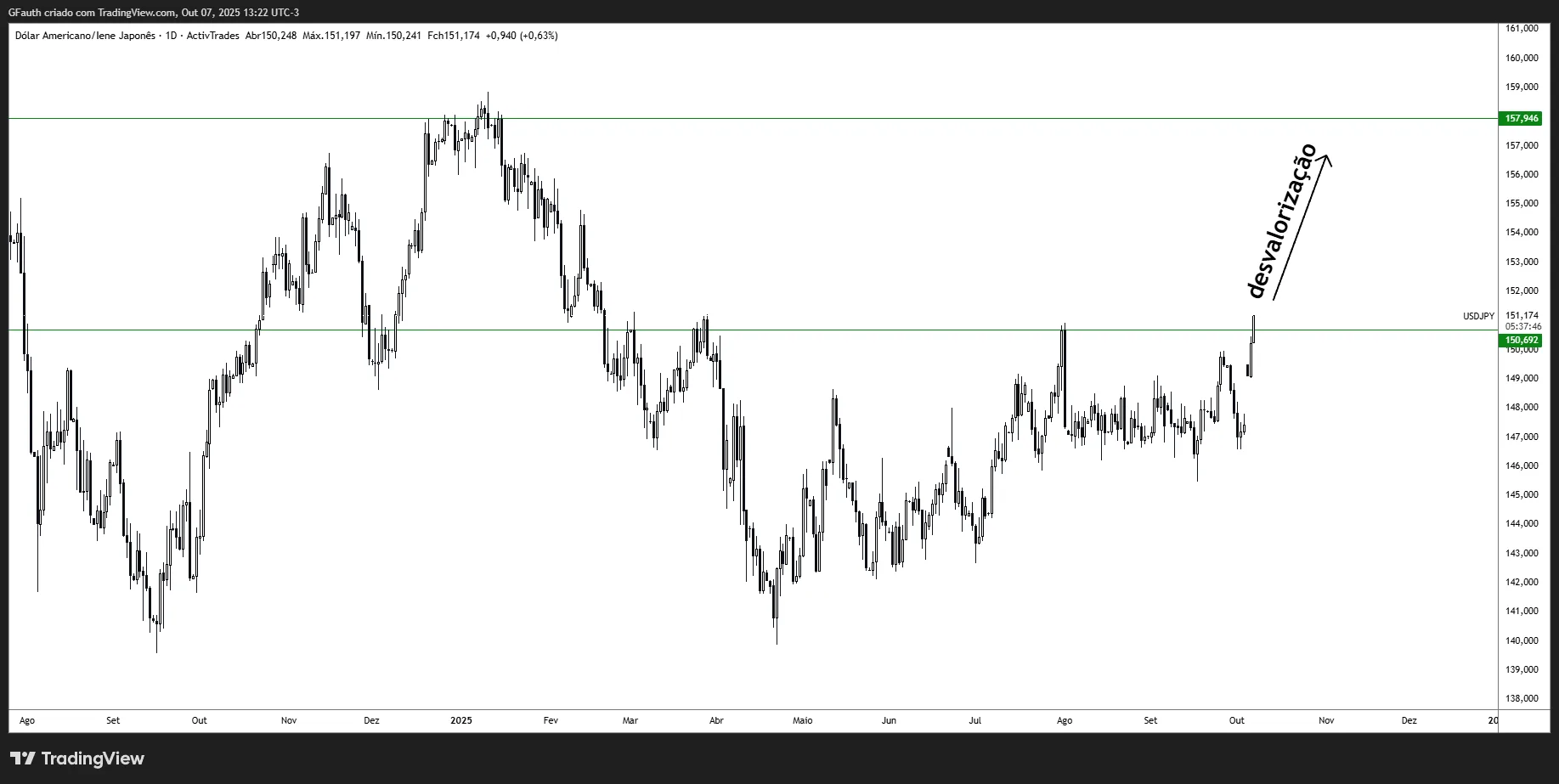 Nesta segunda-feira, tivemos uma surpresa política importante no Japão; a candidata Sanae Takaichi está emergindo como potencial Primeira-Ministra. A visão de Takaichi é de afrouxamento dos títulos e enfraquecimento da moeda (Iene).
