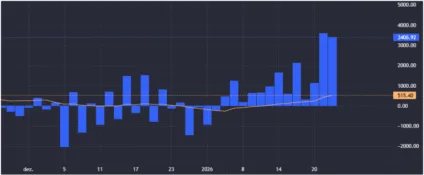 Um dos grandes destaques de 2026 continua sendo o comportamento do capital estrangeiro. O fluxo acumulado (à vista + futuros) dos “gringos” já ultrapassa R$ 10 bilhões em janeiro, enquanto o investidor institucional local segue vendedor no período, com saldo negativo de -R$ 4,2 bilhões, algo que pode ser explicado pelos resgates que seguem acontecendo na indústria.